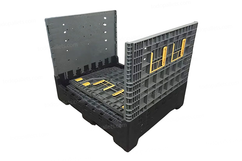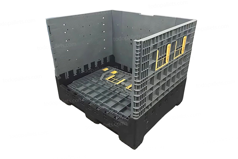 Contenedor plegable multipropósito fabricado en HDPE/PP, moldeado por inyección de alta presión con base soldada para máxima durabilidad y resistencia. Su diseño ligero, con manijas y bisagras integradas, permite un manejo fácil y seguro, soportando temperaturas de -40 °C a 70 °C. Ideal para los sectores automotriz, industrial, agrícola y construcción.