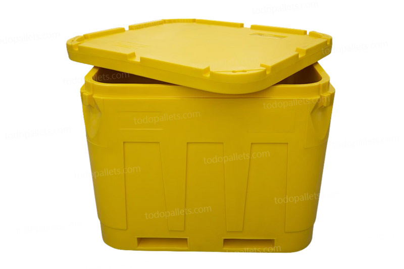 Cajas aisladas a granel fabricadas en HDPE virgen grado alimenticio, con doble pared y aislamiento de espuma para un control térmico eficaz. Su alta durabilidad y resistencia a temperaturas extremas las hace ideales para producción, almacenamiento y transporte en frío dentro de la industria alimentaria, pesquera e industrial. Se puede fabricar en Azul, Amarillo, Rojo, Naranja, Gris y hasta en colores específicos.