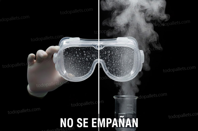 Fabricados con lentes de policarbonato de alta resistencia y marco de PVC. La ventilación indirecta reduce el empañamiento y mantiene los ojos protegidos durante el manejo de sustancias químicas.