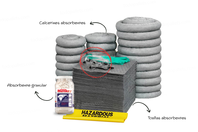 Con todos los materiales necesarios al alcance, el kit permite actuar de manera rápida y conforme a las regulaciones vigentes, asegurando así la protección y el bienestar en el lugar de trabajo.